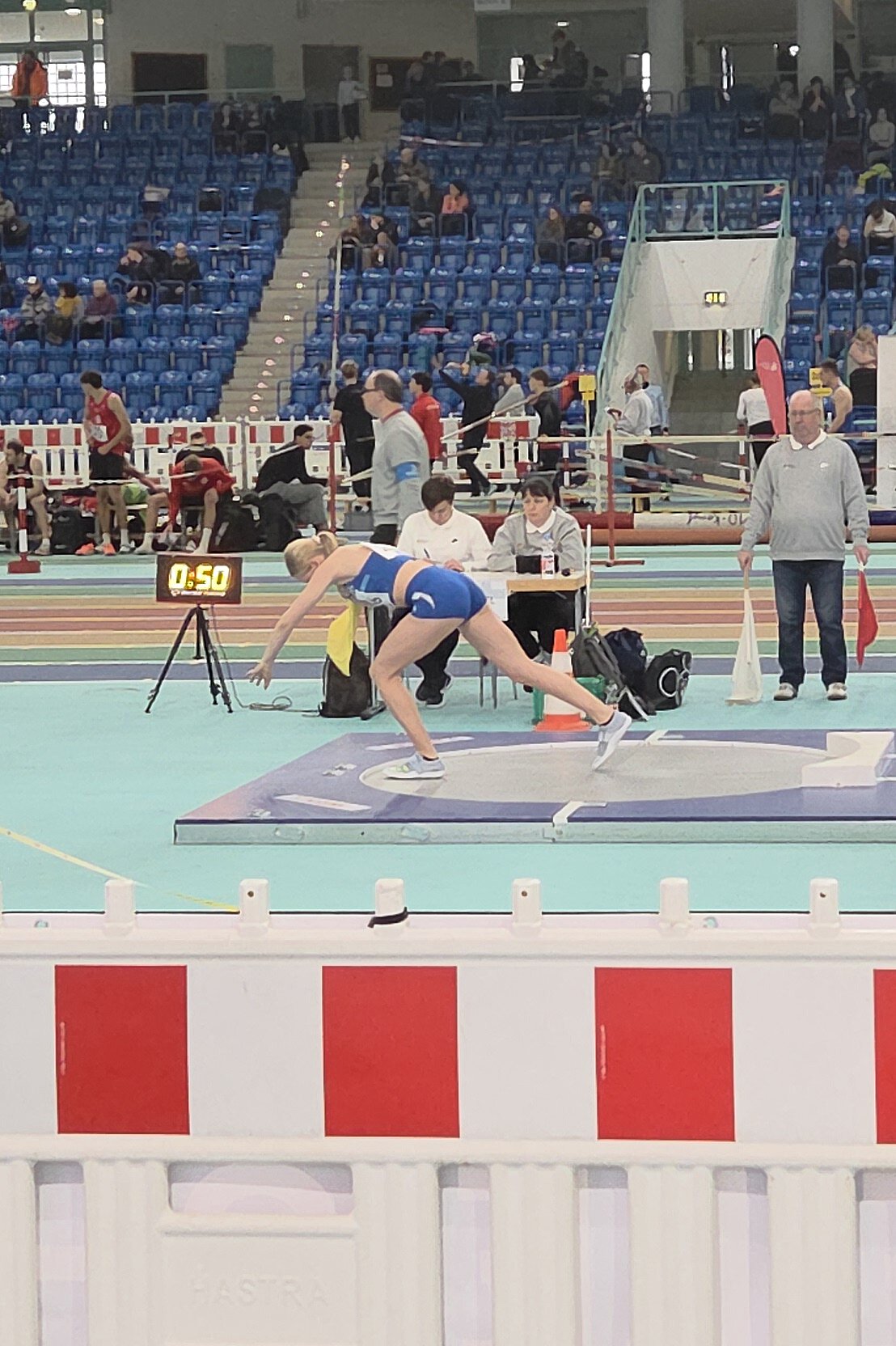 Nicht ganz zufrieden kehrte Matilda Seibert mit einem 10. Platz von den Deutschen U18 Hallenmehrkampfmeisterschaften aus Halle an der Saale zurück. Obwohl die 16 jährige über 60m Hürden in 8,76 Sek gut in den Tag gestartet war und auch der Hoch (1,46m) und das Kugelstoßen (10,38m) ordentlich waren, haderte die Schülerin aber mit ihrer Weitsprungleistung von 5,20m. Damit fehlten entscheidende Punkte, um das angestrebte Ziel einer Top 8 Platzierung zu realisieren. Im abschließenden 800m griff Matilda nochmal an und gewann ihren Lauf in guten 2:26,54min. Mit 3436 Punkte fehlten am Ende 5 Punkte zu Platz 9 und Matilda wurde 10.