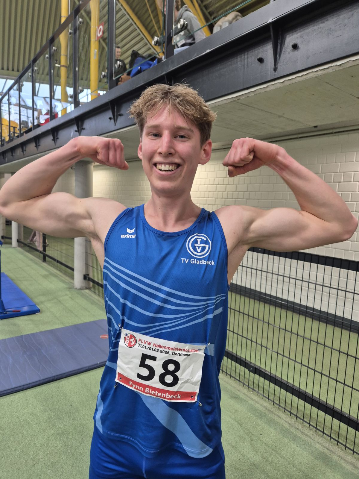 Auch am zweiten Wettkampftag der Westfälischen Hallenmeisterschaften am 31. Januar 2026 in der Dortmunder Helmut-Körnig-Halle präsentierten sich die Leichtathleten des TV Gladbeck in hervorragender Form. Titelgewinne, Podestplätze und zahlreiche persönliche Bestleistungen unterstrichen einmal mehr die starke Nachwuchsarbeit der Blauhemden.